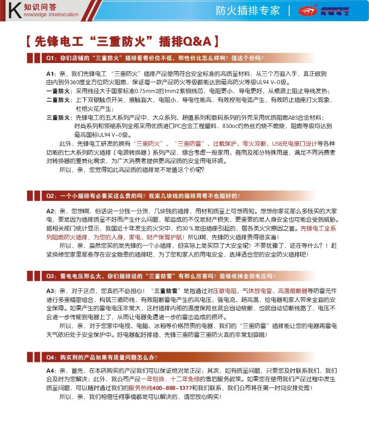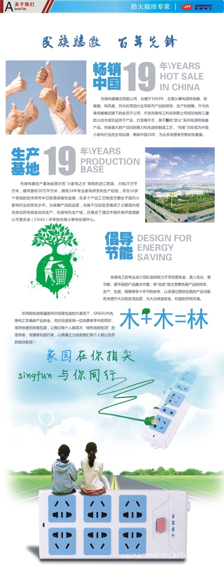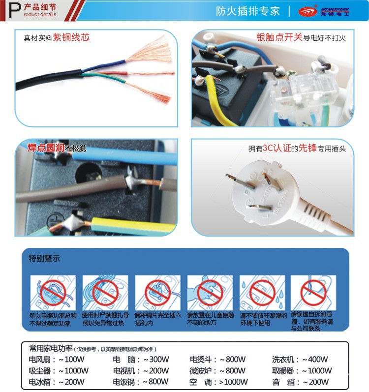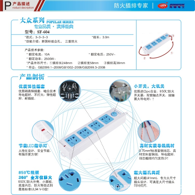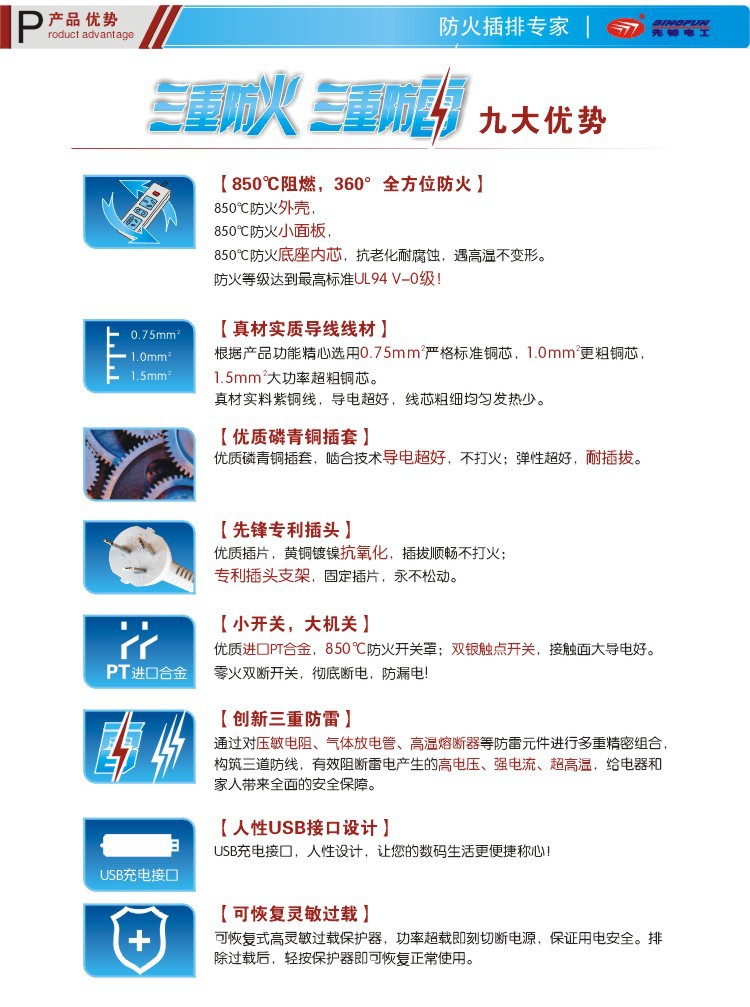 先锋插座 大众系列正品 SF-623 1.8米 5孔 三重防火 新国标插排