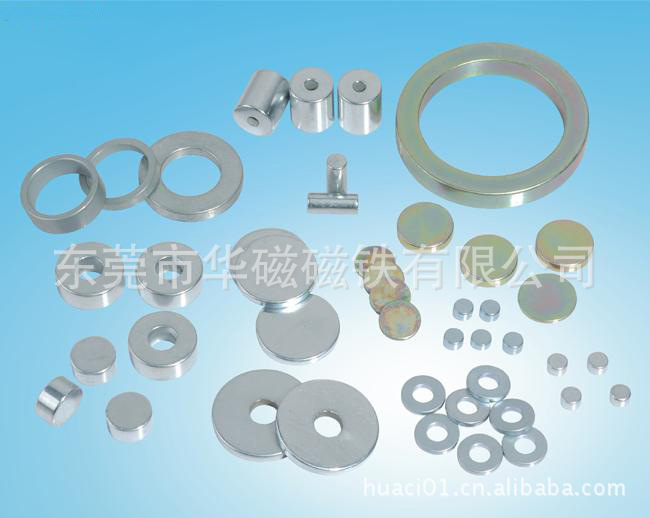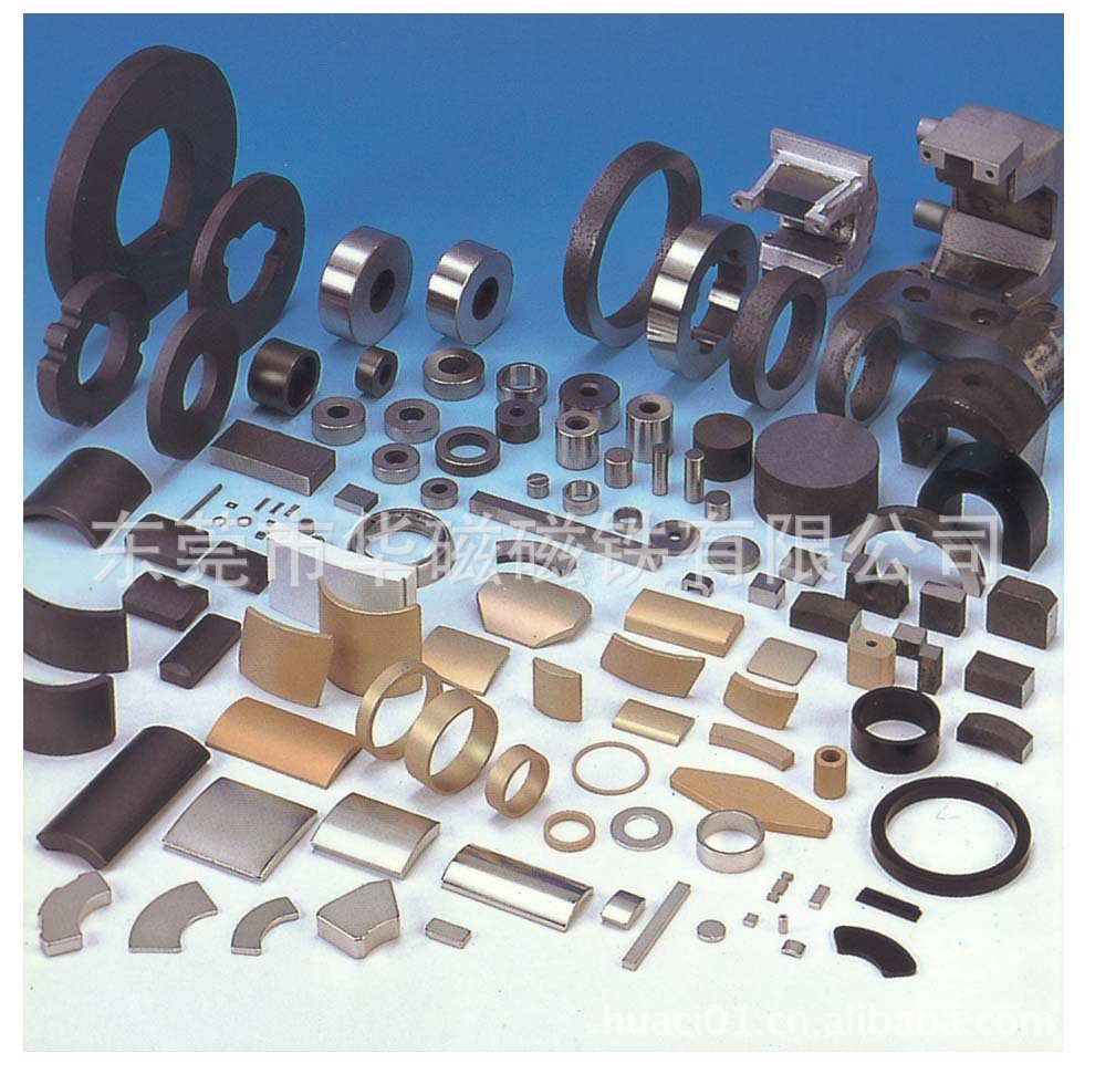 钕铁硼磁铁可生产的性能主要有N33-N52、N30H-N40H、N30M-N40M等不同档次性能的产品,并可根据产品工作环境的要求对其表面可进行电镀或涂覆的处理,如镀锌(彩锌、黑锌、蓝白锌)、镀镍(单层镍、双层镍、镍铜镍)、镀金及涂覆环氧等,可加工形状有方形,圆形,凹形、球形,梯形,面包形等;铁氧体可生产的性能有Y10--Y25--Y30等,并可根据客人要求加成工方形、圆形、面包形,或其它形状;橡胶磁可生产的性能有Y10--Y25--Y30等;磁钮主要有:超薄、加厚、普通厚,表面有压花、光面,另可加工成单撞磁钮或双撞磁钮;磁棒、磁力架主要有普通型与强力型;