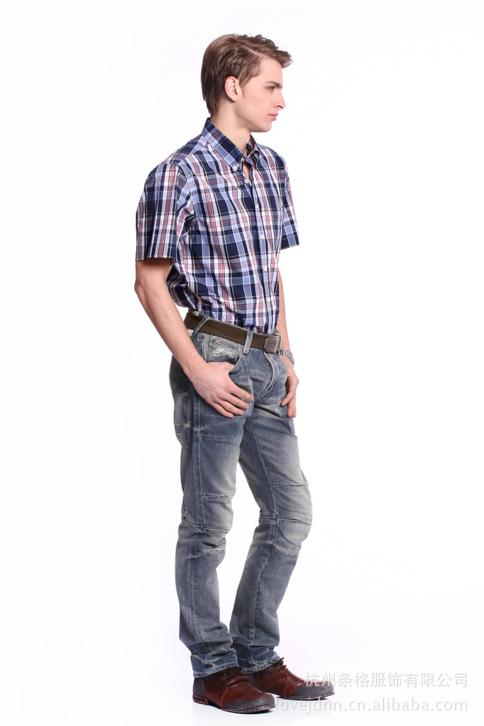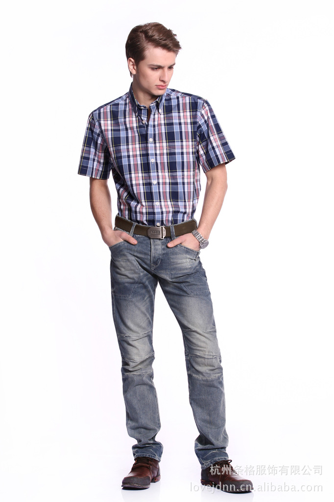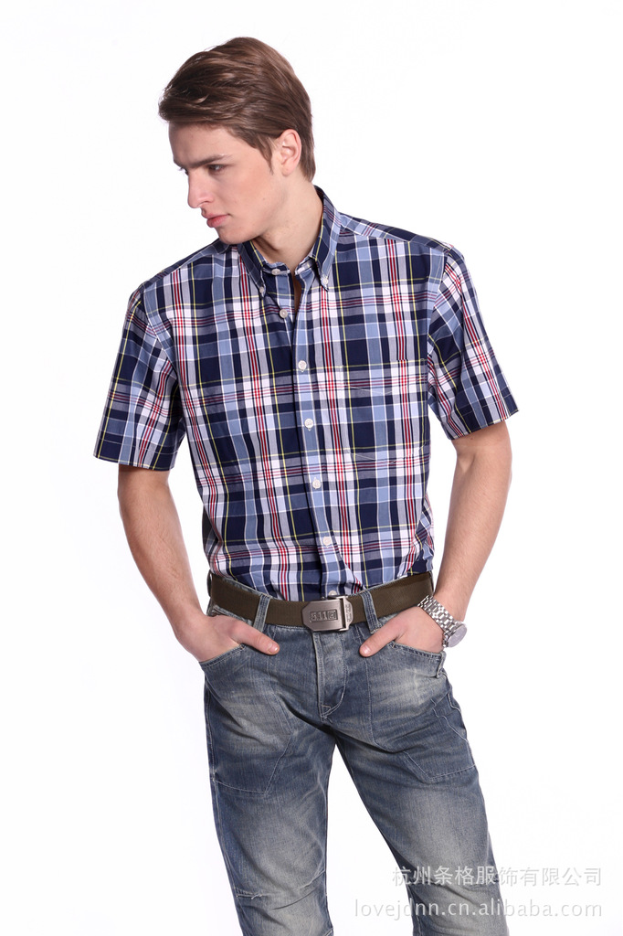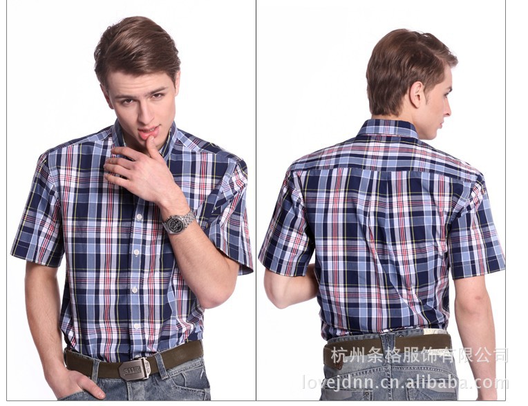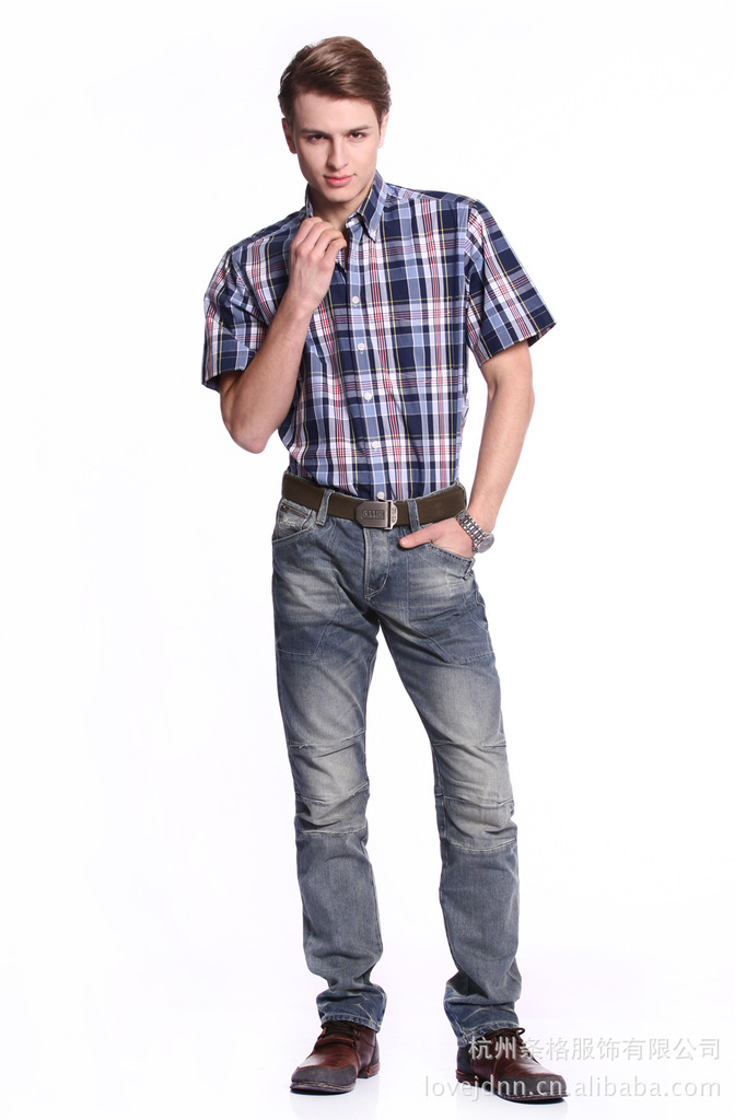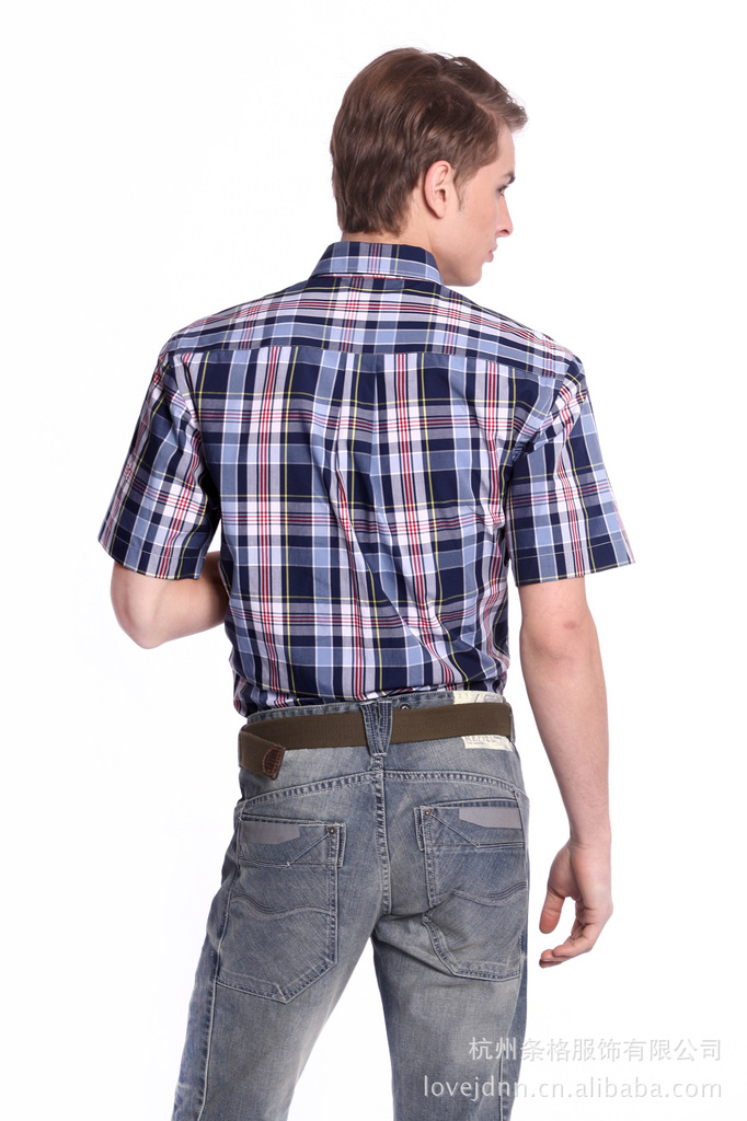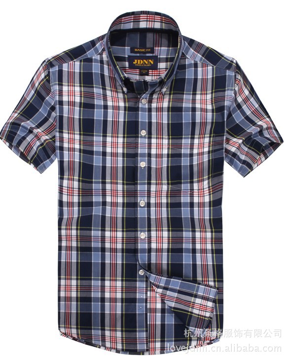 JDNN-夏装新款 纯棉男士时尚休闲格子衬衫 男短袖衬衫DCS12-345