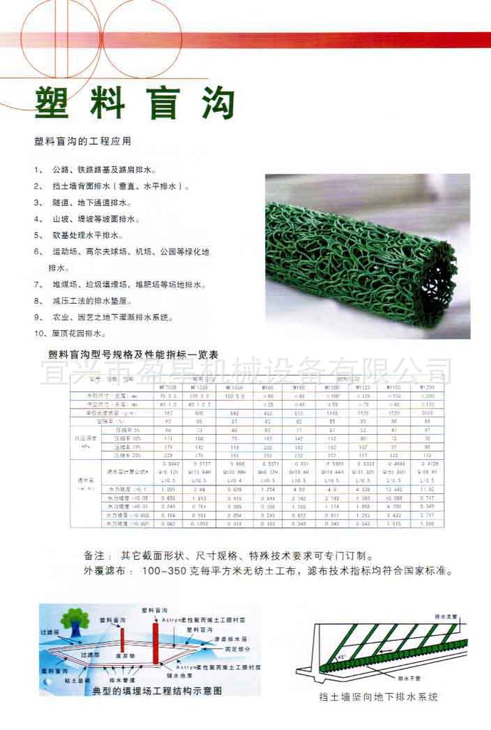 宜兴市盈星机械设备有限公司是土工格栅机械设备、软式透水管设备、波纹管设备、塑料盲沟设备、钢带机设备、土工格室设备、半圆管设备、pp拉带机、组件压力机、组件分解机等产品专业生产加工的有限责任公司(自然人投资或控股),公司总部设在宜兴市新建工业集中区,宜兴市盈星机械设备有限公司拥有完整、科学的质量管理体系。宜兴市盈星机械设备有限公司的诚信、实力和产品质量获得业界的认可。欢迎各界朋友莅临宜兴市盈星机械设备有限公司参观、指导和业务洽谈。塑料盲沟设备成品