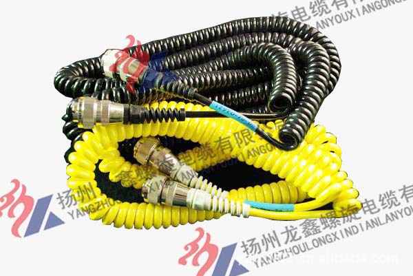 螺旋电缆线 螺旋线绝缘材料:可采用聚氯乙烯,聚乙烯,聚丙烯或叫联聚乙烯及氟塑科,以满足不同场合的要求。