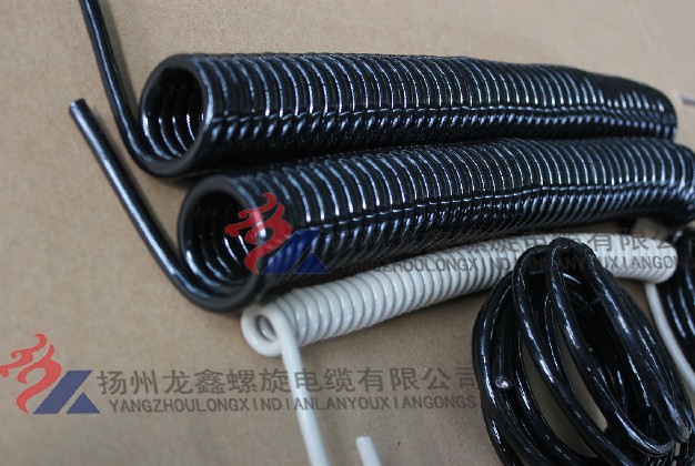 螺旋电缆线 螺旋线产品特性:具有良好的柔韧性和弹性(伸长长度可达原弹簧长度3.5-4倍)。有良好的耐寒性,阻燃性,耐油性和耐磨性。可根据场合不同要求生产各类螺旋型弹簧线。