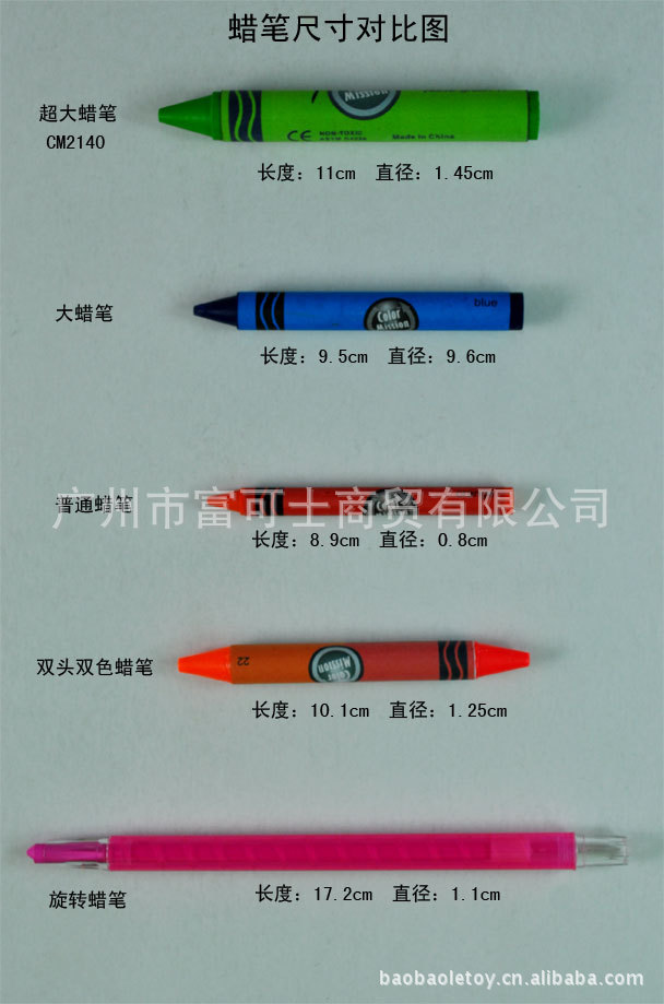 安全环保、色彩鲜艳、色泽饱满。颜料及蜡的分布平均,绘画时在纸上滑