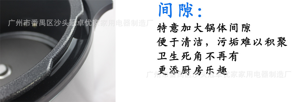 6.开盖保护:锅内有压力锅盖打不开;设有固定卡位,锅盖与锅体没有扣合到位,锅内不会起压力。