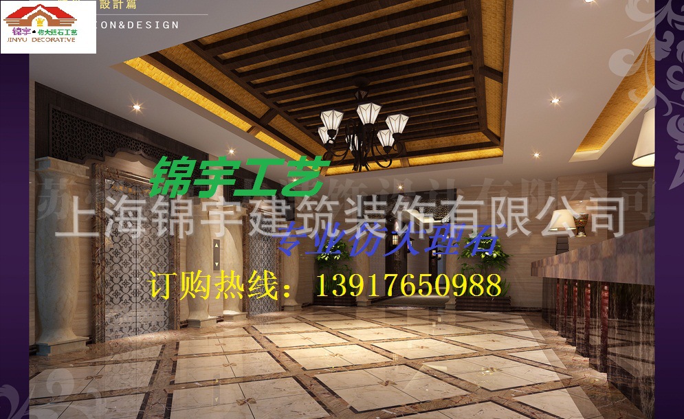 锦宇公司生产仿真大理石、GRC仿大理石、树脂仿大理石、玻璃钢仿大理石、仿大理石工艺品、仿大理石罗马柱、仿大理石异型、KTV仿大理石、酒店仿大理石、仿大理石花瓶、仿大理石线条等。仿大理石GRC构件是最新研制的新型建筑装饰材料。其表面纹理经过特殊处理后,仿真度达95%以上。是现代酒店、娱乐、餐饮等室内装饰必选的高性价比材料。仿大理石GRC构件(彩色GRC构件)与大理石相比具有以下优点:1、 性价比高,价格远低于天然大理石。大幅降低材料成本。2、 可塑性强,艺术质感好,立体造型丰富,设计师可根据项目任意设计造型。3、 安装方便,可预设预埋件,节约安装成本,有效缩短工期4、 环保、无污染,无任何放射性物质,5、 强度高、质地紧密、稳定,安全系数高。6、 自重轻,只有石材重量的2/3,能有效降低墙体载荷。7、 抗冻融、耐酸碱、耐高温,能适应任何恶劣环境。