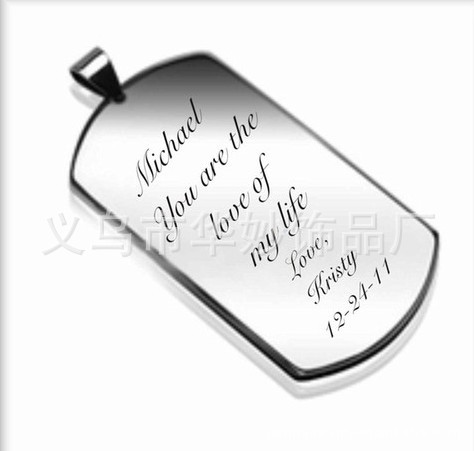 4.目前我厂拥有的不锈钢狗牌/军牌厚度有1MM/1.2MM/1.6MM/1.8/2.0MM/2.2MM/3MM等等。如有客户需要的厚度不一样可以来电咨询。
