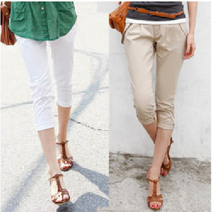 2012韩版春夏女显瘦修身OL大码小脚裤休闲卷边九分裤