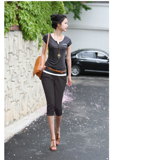 梵微羽轩新款夏装 百搭显瘦七分裤 小脚裤