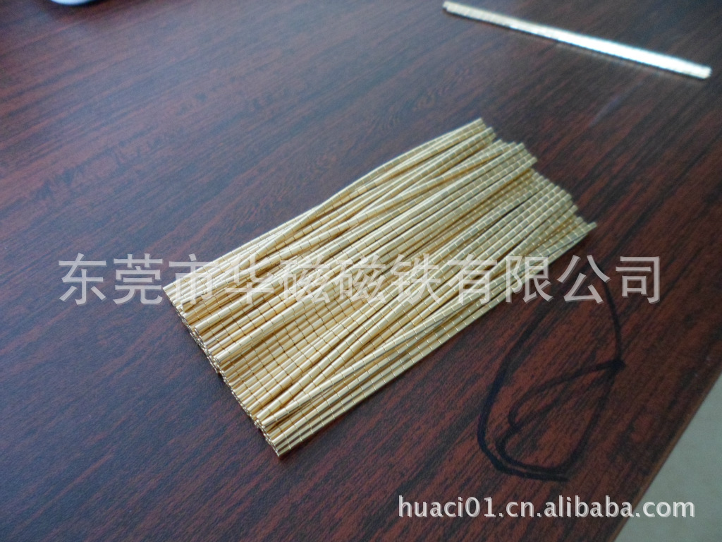 东莞市华磁磁铁有限公司是一家集生产、销售、研发为一体的高新技术民营企业。我公司主要生产经营钕铁硼磁铁及铁氧体、橡胶磁、磁钮、磁棒等各种磁性制品。钕铁硼磁铁可生产的性能主要有N33-N52、N30H-N40H、N30M-N40M等不同档次性能的产品,并可根据产品工作环境的要求对其表面可进行电镀或涂覆的处理,如镀锌(彩锌、黑锌、蓝白锌)、镀镍(单层镍、双层镍、镍铜镍)、镀金及涂覆环氧等,可加工形状有方形,圆形,凹形、球形,梯形,面包形等等,这些产品广泛应用于电子电声、仪器仪表、玩具礼品、皮具手袋、包装盒、工艺饰品、广告印刷及高科技行业。 本公司座落在著名的制造业中心-东莞市大朗镇。连..