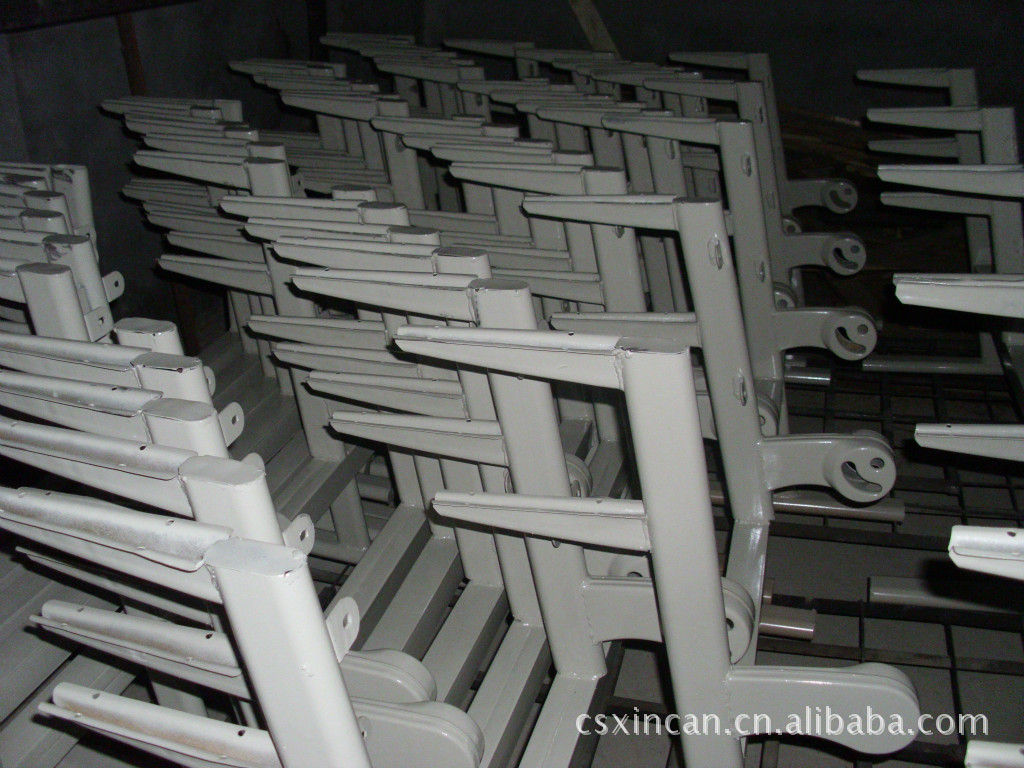 钢材部分:支架脚采用1.2mm厚30*80mm钢,椅侧板采用1.2mm钢板冲压而,所有金属部件均经去油、除锈、磷化处理后,再焊接,焊接好后,再经过静电喷粉,高温固化而成。