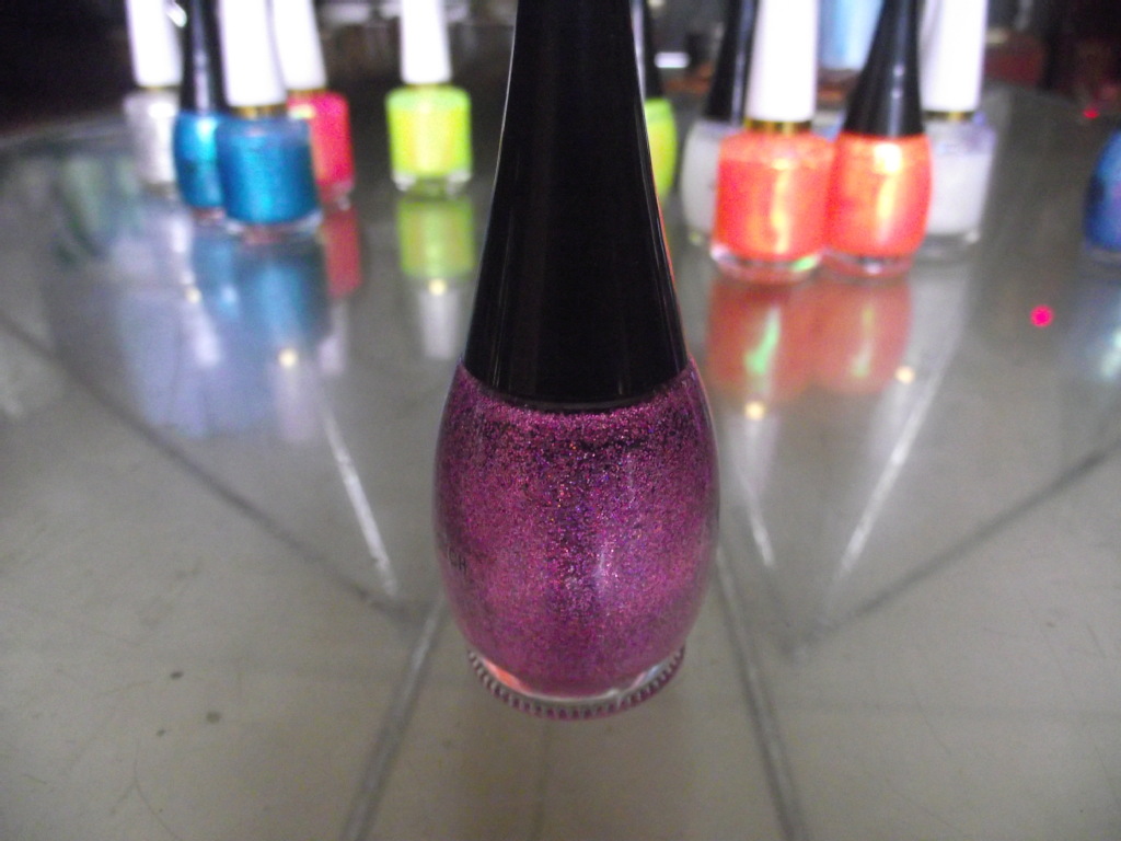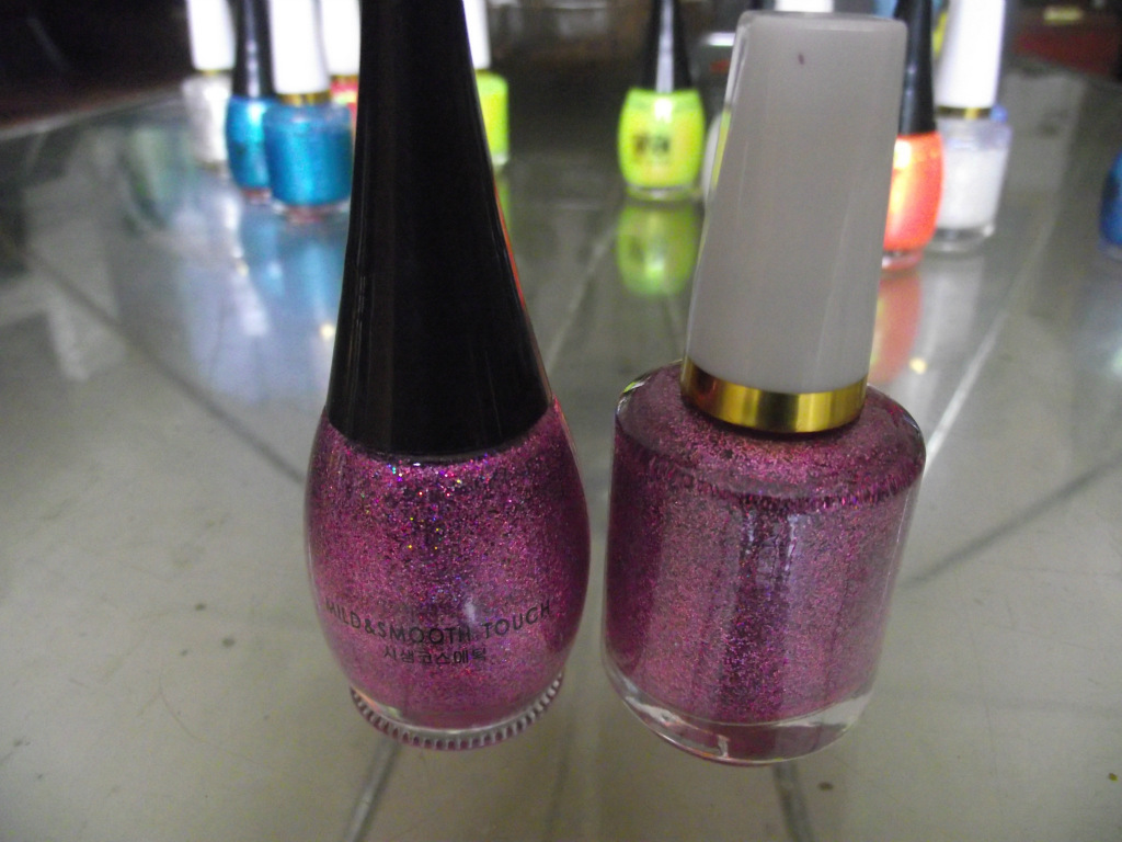 环保镭射桃红闪粉指甲油,给人一种随和、平易近人的感觉,非常闪,非常亮!