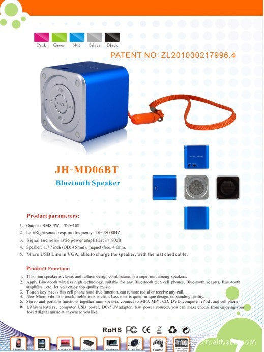 (2) Micro SD card/TF card can play music by insert straightly, support MP3 format music. With Earphone slot. (3)With strong bass.