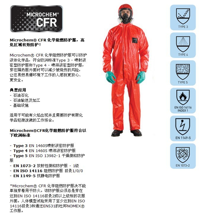 特价供应化学高危阻燃防护服 Type 3 Microchem CFR