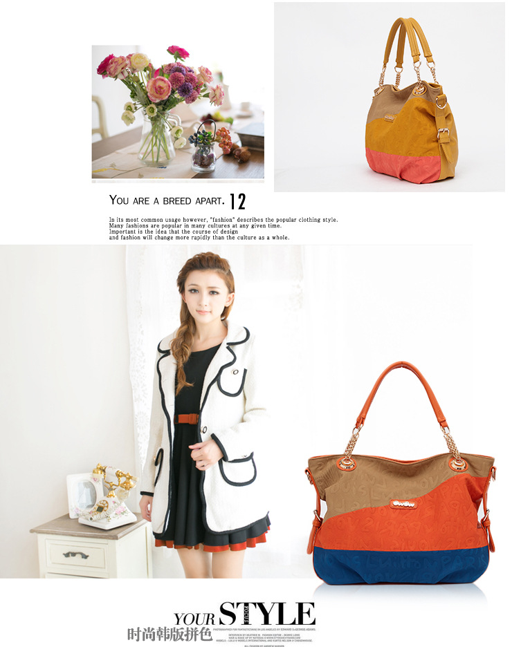 2013新款撞色女包韩版潮款单肩斜跨手提大包网络代销厂家直销