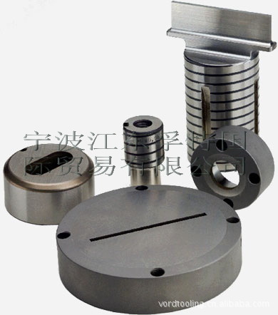 Mate的Vulcan模具系统适用于村田威德曼机器,包括精密高速钢冲芯,金属退料板和Mate的防带料Slug Free®下模设计。