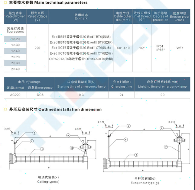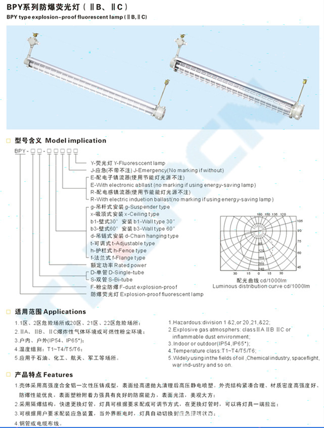 腾达防爆电器/BPY系列防爆荧光灯IIB、IIC