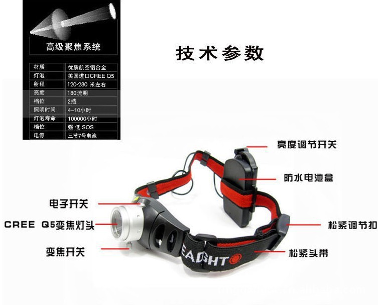 采用美国CREE 3W大功率LED,LED亮度达到90流明以上;