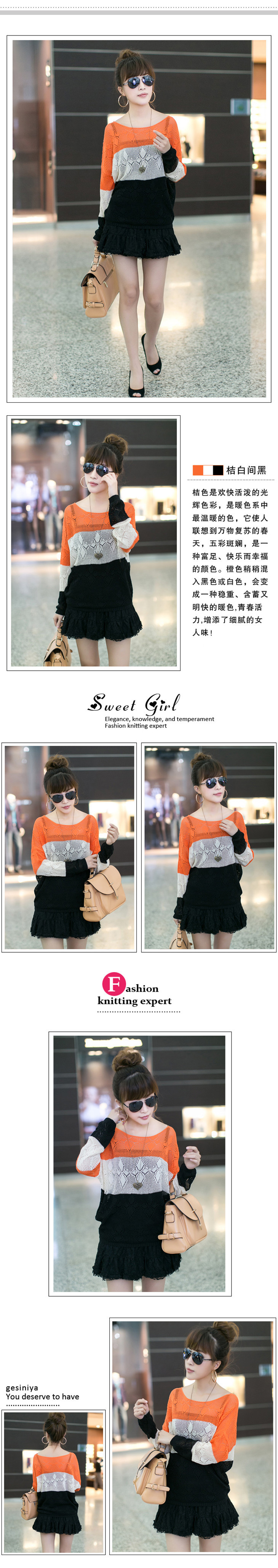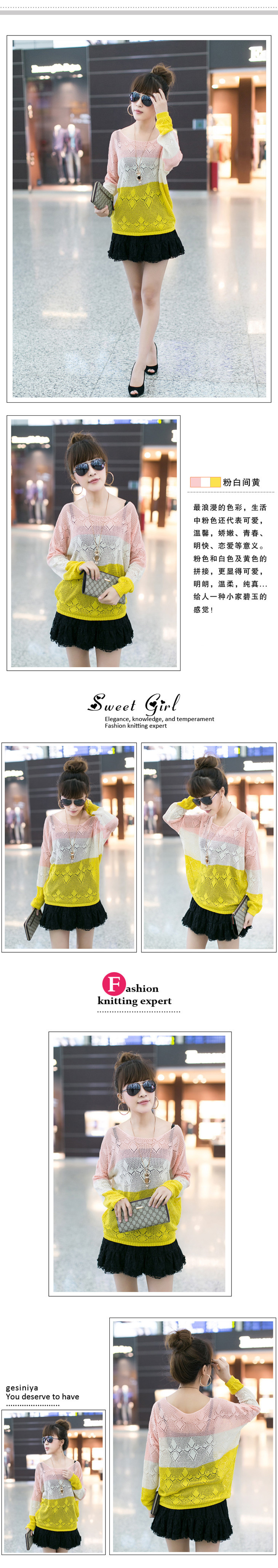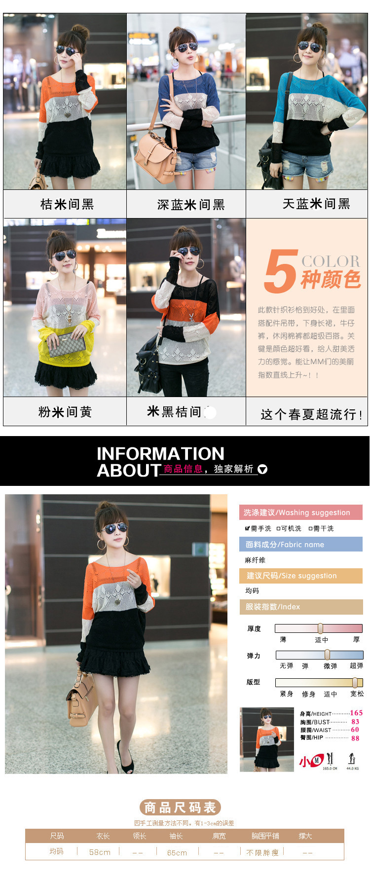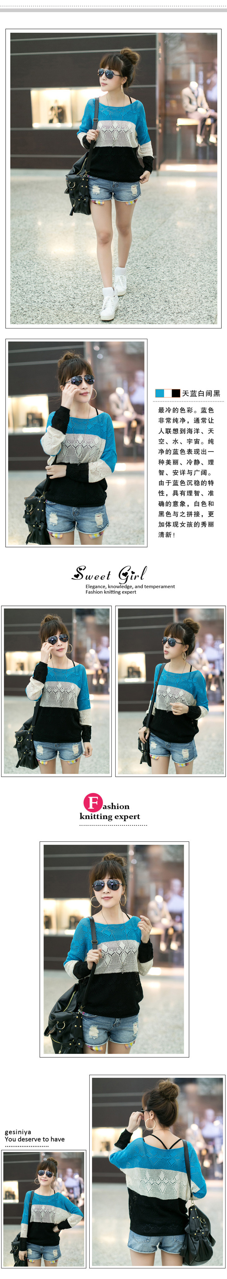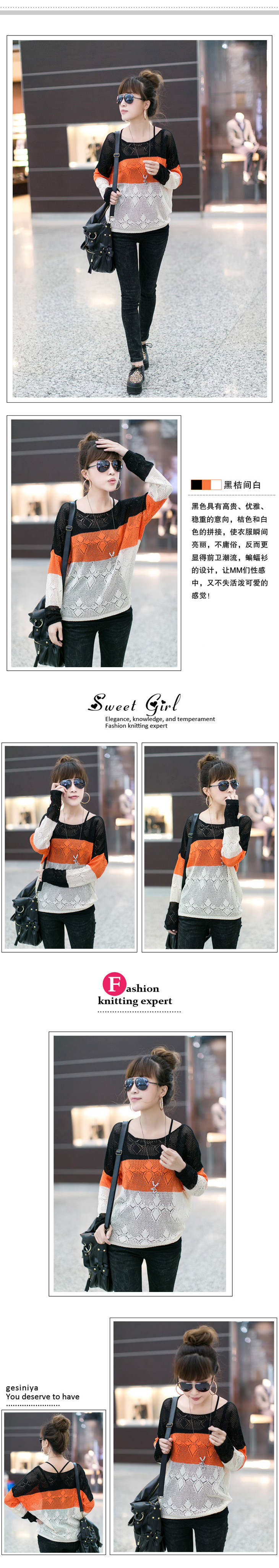 实拍2013新款春装韩版提花镂空一字领撞色条纹针织衫毛衣女