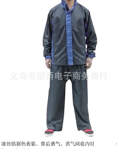 1以上雨衣男女兼用,使用于各种场合,携带方便,多色可选。出口货物均可装箱。面料柔软,遇寒冷不变质,不粘水,干爽舒适,防水性强。