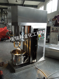 行星搅拌机是由低速搅拌器和高速分散器组合而成的,具备了良好的混合、反应、分散、溶解作用,特别适合从粉体到高黏度、高密度的物料溶解、混合、混炼、反应工艺。由于双行星搅拌机具有极大的输出扭矩,特别适用于粘度性比较大的产品,比如胶黏剂、硅胶、锂电池浆料等;可以根据不同生产工艺及物料特点选择不同的搅拌桨(如:麻花框式、多桨叶式),增加刮壁刮底、温控、真空等多种功能。
