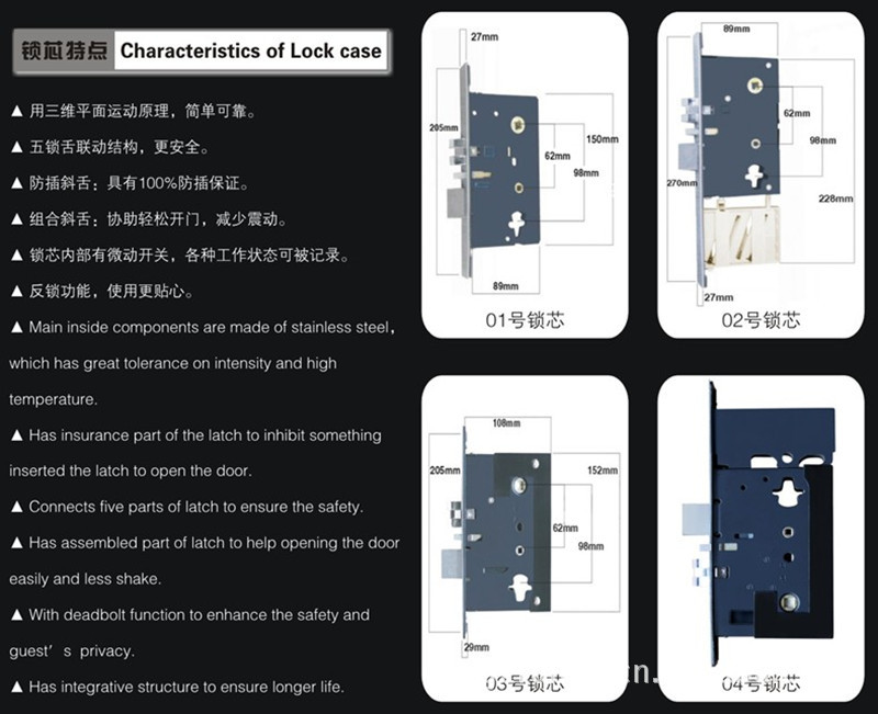 威尔仕 酒店门锁锁体 新五舌锁芯 01号