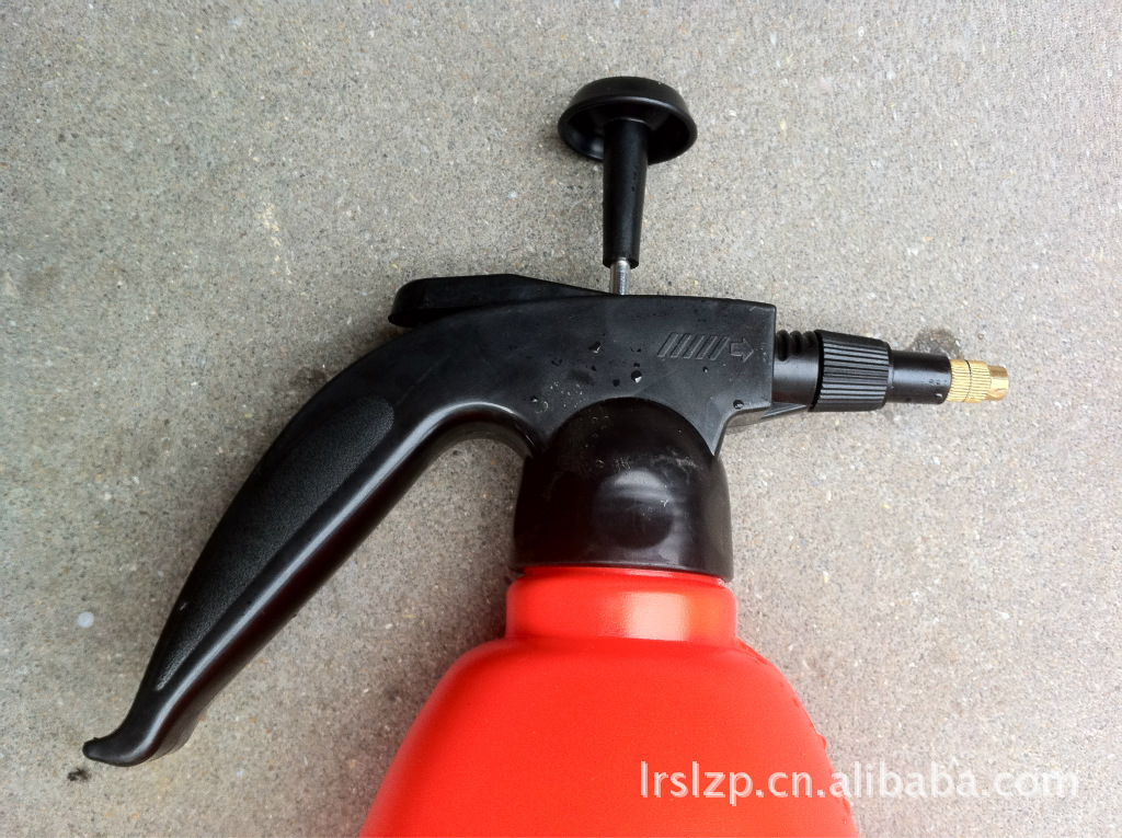 家用浇花喷雾器,塑料材质。瓶上带有刻度,只需放一半水即可,然后抽动压力杆,用压力可以持续喷出水雾,喷口处还可以左右调节水雾大小。是家用浇花,花艺不可缺少的好帮手。