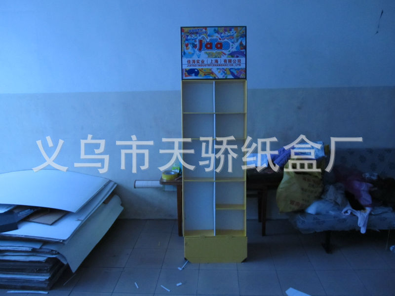 2、展示盒,纸货架全部(或主要)由印刷纸和高硬度纸板,足以承载促销商品,纸货架可承重最大120KG的重量