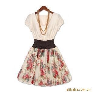 日系蕾丝雪纺连衣裙 南美连衣裙贴牌加工 广州服装代工厂