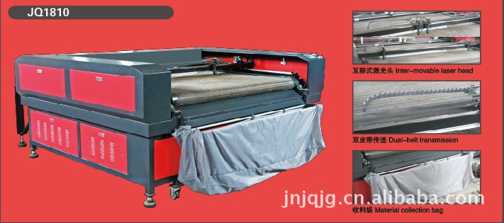 毛绒玩具、皮革、布料专用机型推荐说明:JQ1810玩具面料两头互移式激光切割机选用履带式工作平台,双激光头互移加工与 自动排料系统相结合,切割速度快,面料利用率高,并可配自动送料系统,实现连续送料切割,特别适合于毛绒材料、复合面料等材料的切割。100W玻璃管封离CO2激光器,1800mm×1000mm履带式工作平台,精度±0.01mm,可配自动送料,更加省时省力.