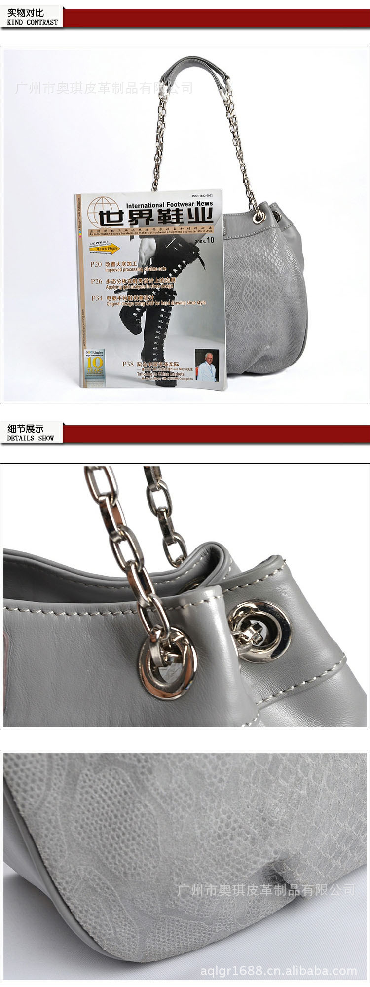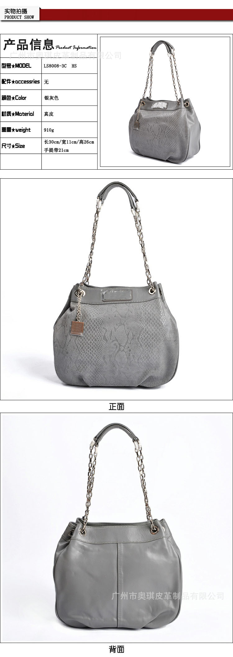 我公司成立于2008年,是专业的广州时尚女包厂家,集休闲时尚女包、半定型男包、半定型男女包、定型包、手提包、单肩包、斜挎包、钱包、银包、皮带、礼盒及拉杆箱等系列皮具产品设计开发、生产和销售综合型性质的企业。拥有着先进的生产技术,具备雄厚的开发研制能力和扎实的生产能力,并有着多年完善的商业运作管理模式。 公司自成立以来,始终秉承:“品质决定市场,服务缔造品牌”为经营理念。品牌定位于中高档层次,产品全部采用国内外最优质的真皮制作,品质保证。