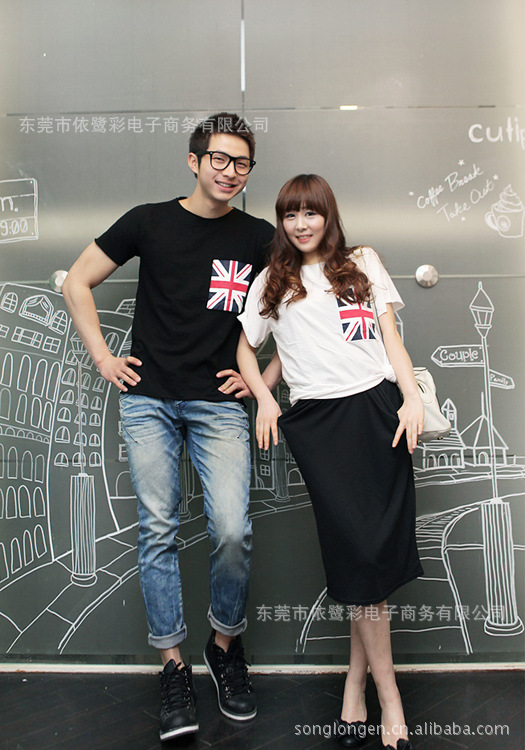 虎门依鹭彩夏季情侣装批发 圆领情侣T恤批发休闲百搭情侣装