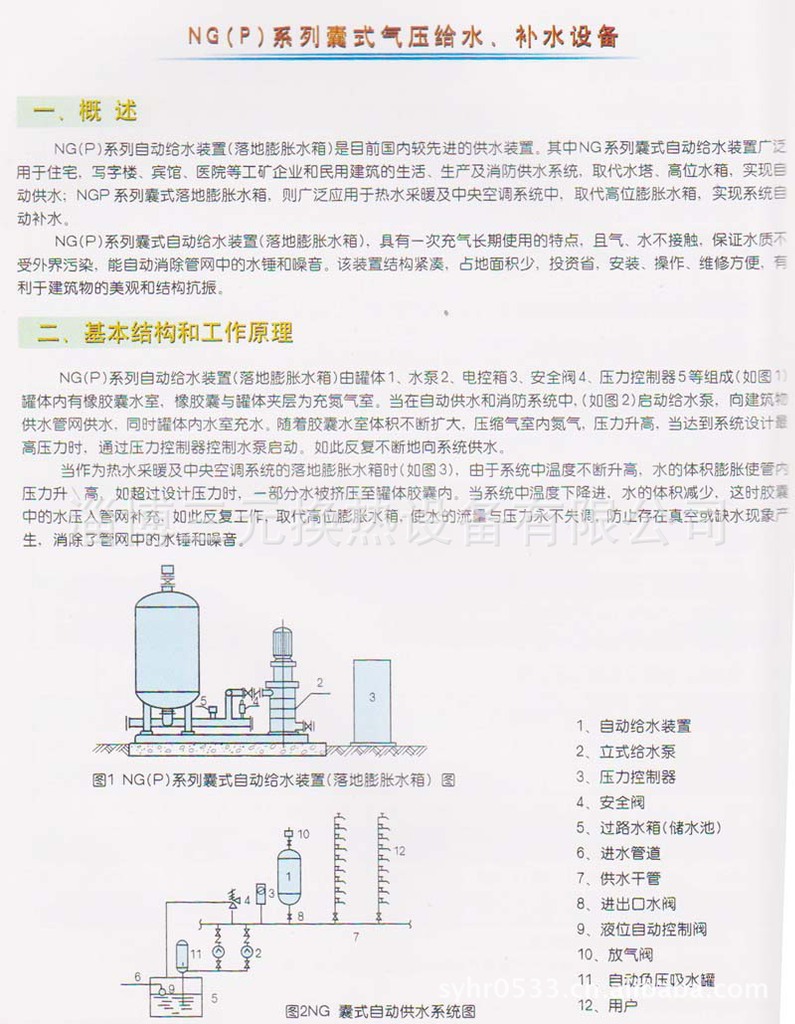 公司主导产品—换热设备和供水设备。换热设各有浮动盘管、复合流程、双纹管、板式换热器四大系列300余个品种;供水设务有XZG系列蓄能增压全自动供水设各;FPS系列变频恒压给水、补水设备;NG (P)系列囊式自动给水设备、定压补水设备:无负压供水设备:蓄水设备有组合式不锈钢焊接水箱等系列500余个品种。另外还生产与空调、暖通系统配套的分、集水器、除污器、过滤器、软水箱等其它设备口管壳式换热器,曾先后荣获国家发明奖、山东省科技进步·等奖;列管式换热器曾荣获山东省科技进步二等奖;并先后被国家建设部评定为“工程建设推荐产品;被化工部评定为“化工工程建设定点产品”;被山东省质量协会确认为“向社会推荐产品”。并在通过IS09001国际质量体系认证。公司历年来多次被山东省政府评为“重合同.守信用”企业;“科技先导型”企业。