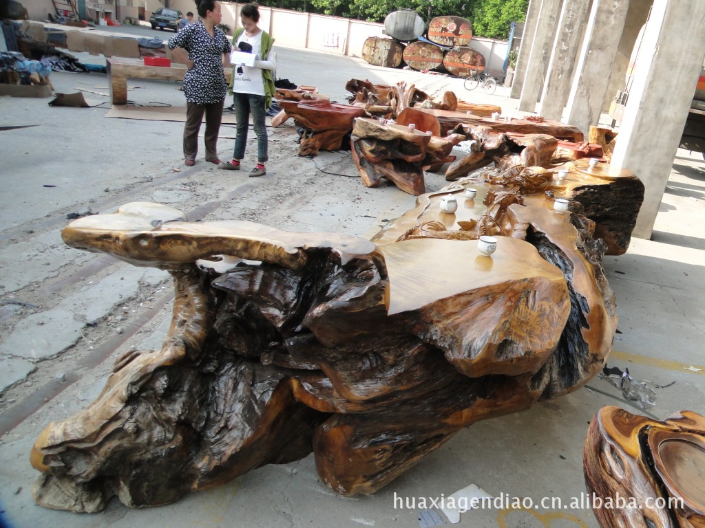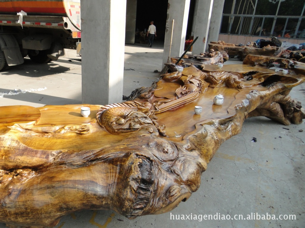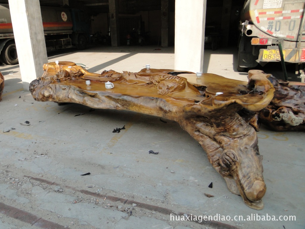 [华夏神韵]大型整体楠木根雕茶几 高档大气根雕茶桌茶海独特