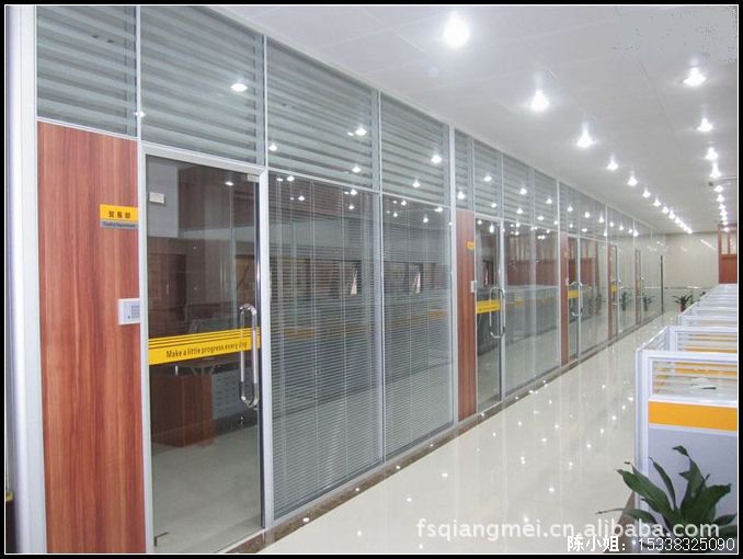 高隔墙系列常规是采用优质铝合金做为框架,专业设计的型材,具体款式有10-12厘单玻钢化的隔断产品,5+5厘钢化双玻中空加百叶的样式,用在办公室内或者是银行、机关、政府部门均可,隔音效果十分良好,常规的在45dB左右,到顶的一种隔断形式。