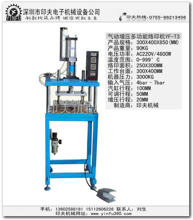 深圳市印夫电子机械设备公司成立于2004年,是一家集研发、制造、销售、维护于一体的综合性企业 。公司自2005年研制开发出国内首台手持式烙印机至今,已陆续向市场推出手持式调温烙印机、手持式恒温烙印机、手持式记数烙印机、台式手动多功能烙印机、台式气动多功能烙印机、气动增压多功能烙印机、自动化烙印机、自动化滚印机、全自动皮标牌烙印机等周边设备30 多种机型,9年来赢得了国内外上万家新老用户的信赖与支持。