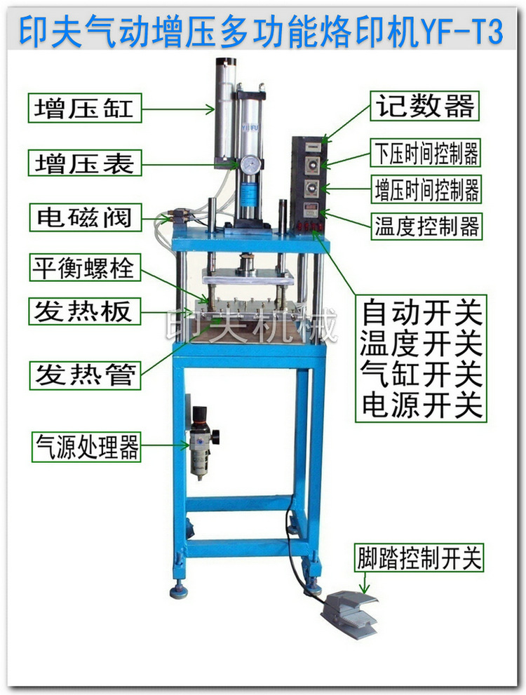 本机只需调整温度、冲压时间、行程即可实现烙印、热印、压印及烫金工作要求。图案印制的颜色深浅和图案的凹凸感均可在对设备功能的调控下达到理想效果。广泛用于:竹木.皮革.纸张.塑料.橡胶.亚克力板等材质上的图案印制及烫金加工。