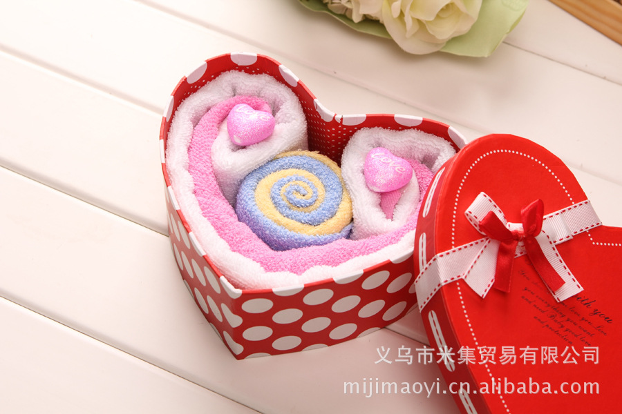 {蛋糕毛巾的起源}1959年,法国南部一个小镇上的甜品店老板在某天发现每天给对面旅馆送毛巾的马车上一叠叠洗好的毛巾很像刚出炉的蛋糕,于是他突发奇想尝试着用毛巾折成蛋糕的样子摆在橱窗里,这样即节省了用实物做样品的成本,又有噱头。果然这家甜品店的生意越来越好,不过不是蛋糕卖的好,而是客人都把他毛巾全买走了。原来浪漫的法国人宁可不要面包也要爱情,这种蛋糕形状的毛巾不但带有可爱的外型,而且还让人垂涎欲滴,让人们比面包更想拥有。后来这家甜品店再也不做蛋糕了,专门卖起了蛋糕形状的毛巾。