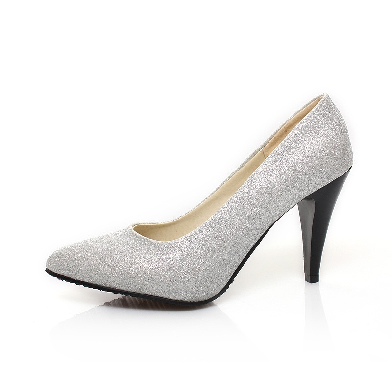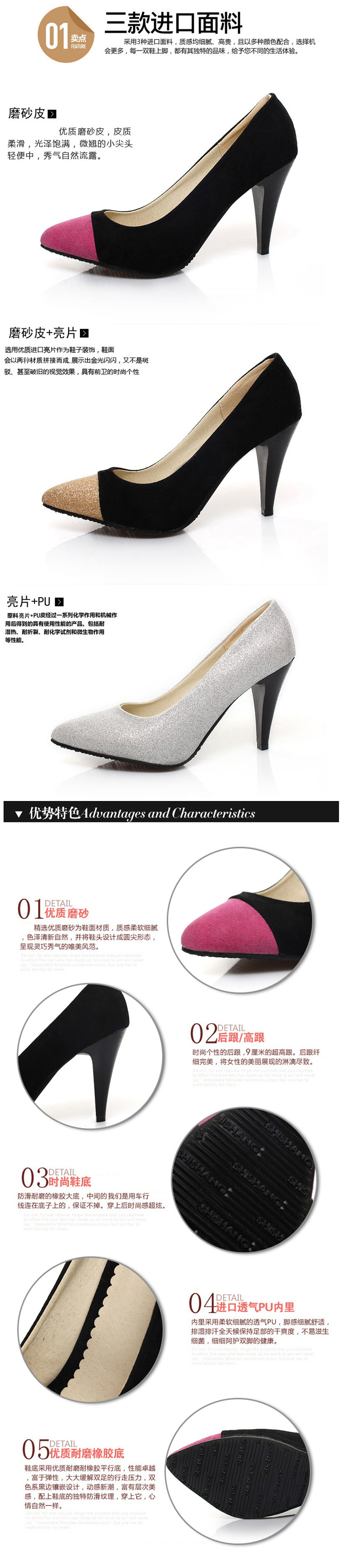 优质进口亮片+磨砂皮女鞋单鞋细跟尖头休闲舒适单鞋