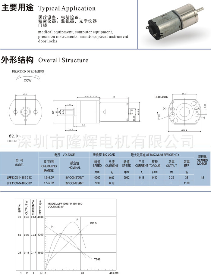 型号:12GA齿轮电机,典型减速比:1:30 1:60 1:150 1:300(具体减速比与参数可根据客户要求设计与开发)产品应用为:监视器、精密仪器、小型机械。