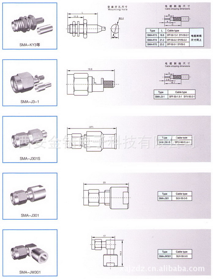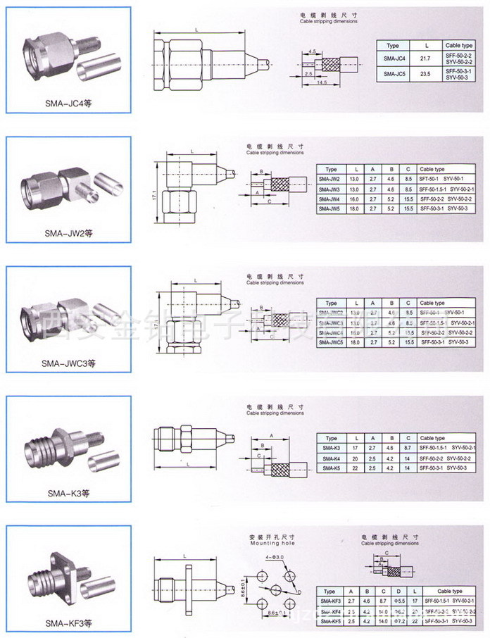 SMA/BNC/SSMA/BMA/SMB/TNC/N/SMA-JBC2C/射频同轴连接器