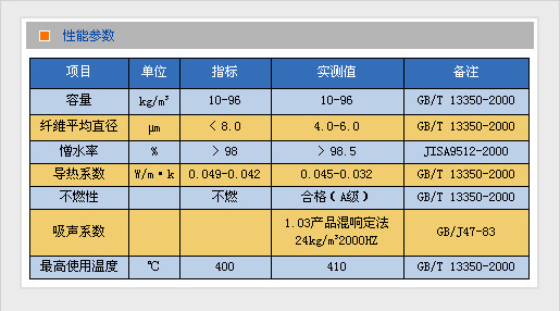 离心玻璃棉主要技术指标