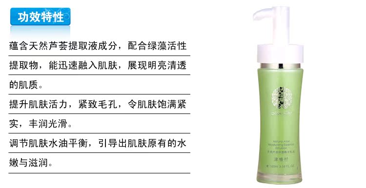 蕴含天然芦荟提取液成分,配合绿藻活性提取物,能迅速融入肌肤,展现明亮清透的肌质。提升肌肤活力,紧致毛孔,令肌肤饱满紧实,丰润光滑。调节肌肤水油平衡,引导出肌肤原有的水嫩与滋润。