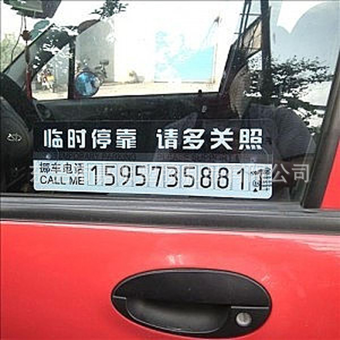 产品名称:临时停车牌材 质:环保pvc品 牌:JY(客户自定)包 装:单个产品OPP袋装(可根据客户要求订做)风 格:简约技 术:滴胶成型尺 寸:290*90mm 客户自订颜 色:蓝色、红色、黄色 (客户自定)用 途:汽车临时停靠联络号码司机朋友们常常会遇到这样的问题,开车在外找不到合适的停车位又忙着办急事,可能会临时占道或者堵着别人的出口或门口。这样也很容易引起别人的不便,有不少人会在挡风玻璃上,车窗上留下名片或者纸条再离开,但是遇到刮风下雨就没有用了,而且容易掉。为了迎合广大车友的需求,工厂特别设计了以环保pvc材质制作的“临时停车牌”,停车牌上面写着“临时停车,请多关照”,并附有车主的联系电话,非常人性化。停车牌还配有强力的吸盘,可以吸在前挡、侧挡、后档、玻璃上不会掉,每一个停车牌都配有四组数字,使用方便,可以反复拆卸。通过告示牌上提供的的电话号码不仅方便了自己,也不用担心影响别人,造成人为车体受损。停车牌采用通过环保认证的pvc软胶材质,无毒,无味,对人体没有任何伤害呢。产品具有很好的抗张强度(可达到500PSI)及抗撕性(可达88LBS)极佳的耐热、耐寒、抗氧化、抗腐蚀性。