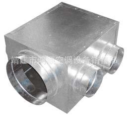 消声静压箱 此型静压箱一般用于风机机组之后,机组出来的气流进入静压箱入口,以减少动压增加静压,吸音减振,从而使静压箱出口气流更平稳,更理想。这种静压箱一般尺寸较大。 此型静压箱外壳为镀锌钢板,内填50mm超细玻璃棉,用纤维布包面,再用孔板覆盖固定。出入口用角钢作法兰与风道连接。订货时用户除给出长×宽×高(A×B×C)尺寸外,还需要附图给出出入口法兰位置和尺寸。