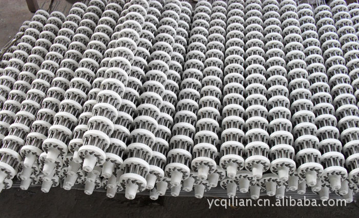 其结构是将加热元件的电阻丝(带)弯成“U”形串入多块绝缘耐高温的陶瓷支撑盘中,中间用一根耐热棒固定,这种辐射管寿命较长。
