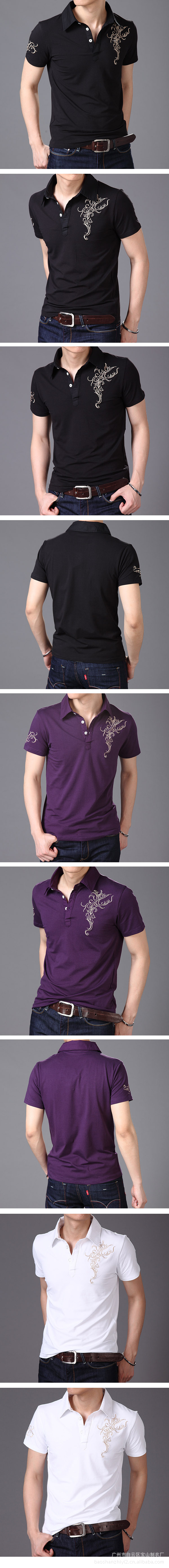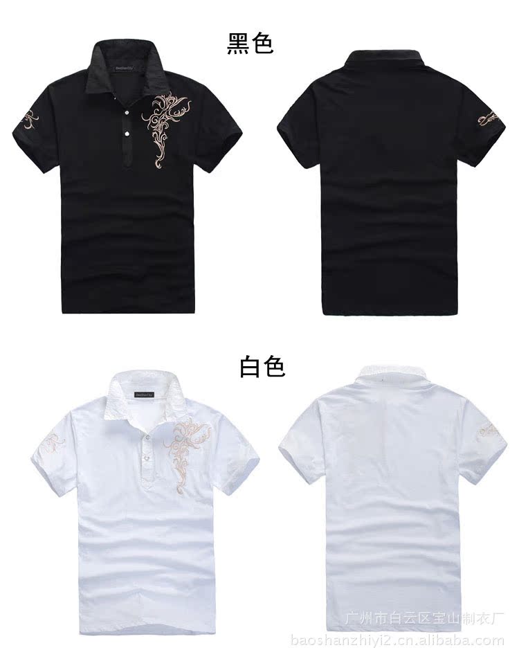 2013春夏新款刺绣花纹绣花男纯棉翻领短袖男t恤
