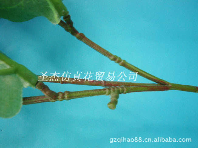 【材质】:叶子和花(绢布)、枝杆(塑料+铁丝)、丝印叶子