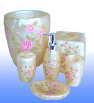 本套斑马纹卫浴五件套 乳液瓶 肥皂盘 纸巾盒 牙刷架 垃圾筒