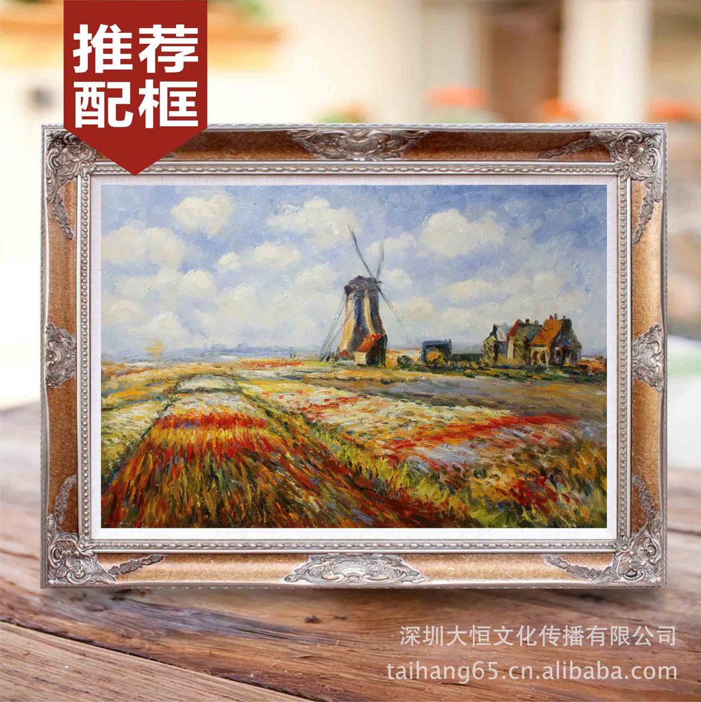 高档有框手绘欧式装饰墙壁油画 客厅卧房印象派莫奈风景作品包邮