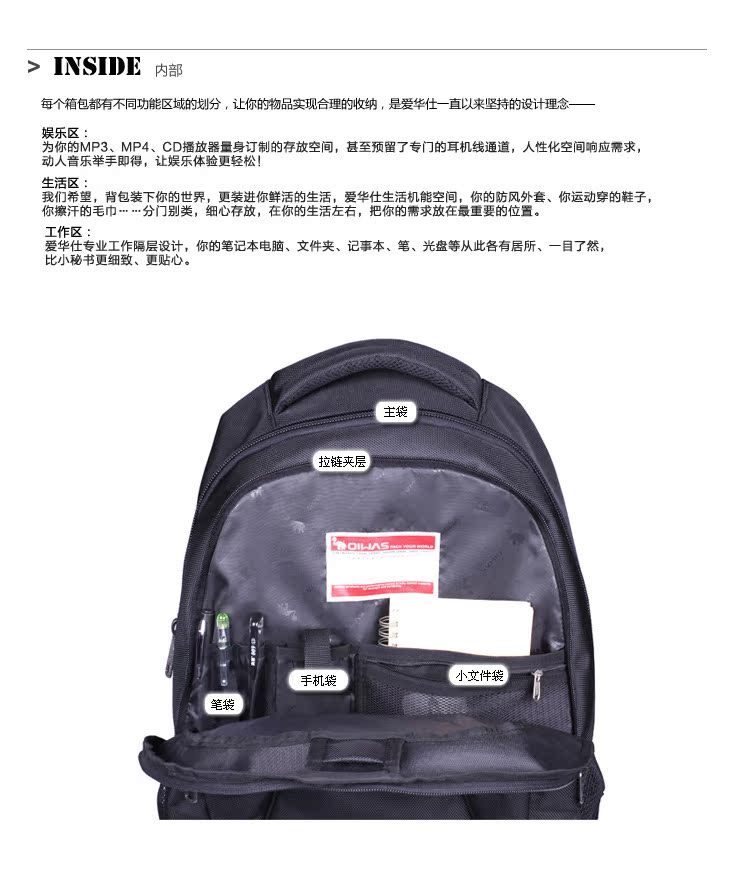 爱华仕正品双肩背包 热销电脑背包 时尚休闲包 男士背包OCB4023